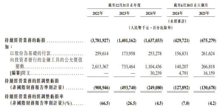 通过观察可以发现,亏损在2023年一度大幅收窄,但是2024年再度回升。2025年上半年的亏损,同比扩大56.98%,经调整后亏损也同比扩大了2.34%。