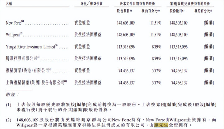 招股书显示,微医控股的两个最大股东是New Forte和Willgreat(一家根据英属处女群岛法律注册成立的有限责任公司),而New Forte由Willgreat全资拥有,廖杰远又全资拥有Willgreat。也就是说,廖杰远通过这两家公司,间接持有微医控股23.02%的股份。